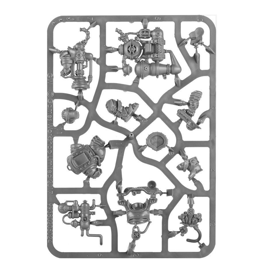 This multipart plastic kit builds an Aether-Khemist, a specialist surveyor of the Kharadron airfleets. He’s armed with an atmospheric anatomiser – a bulky piece of scientific equipment that can also choke