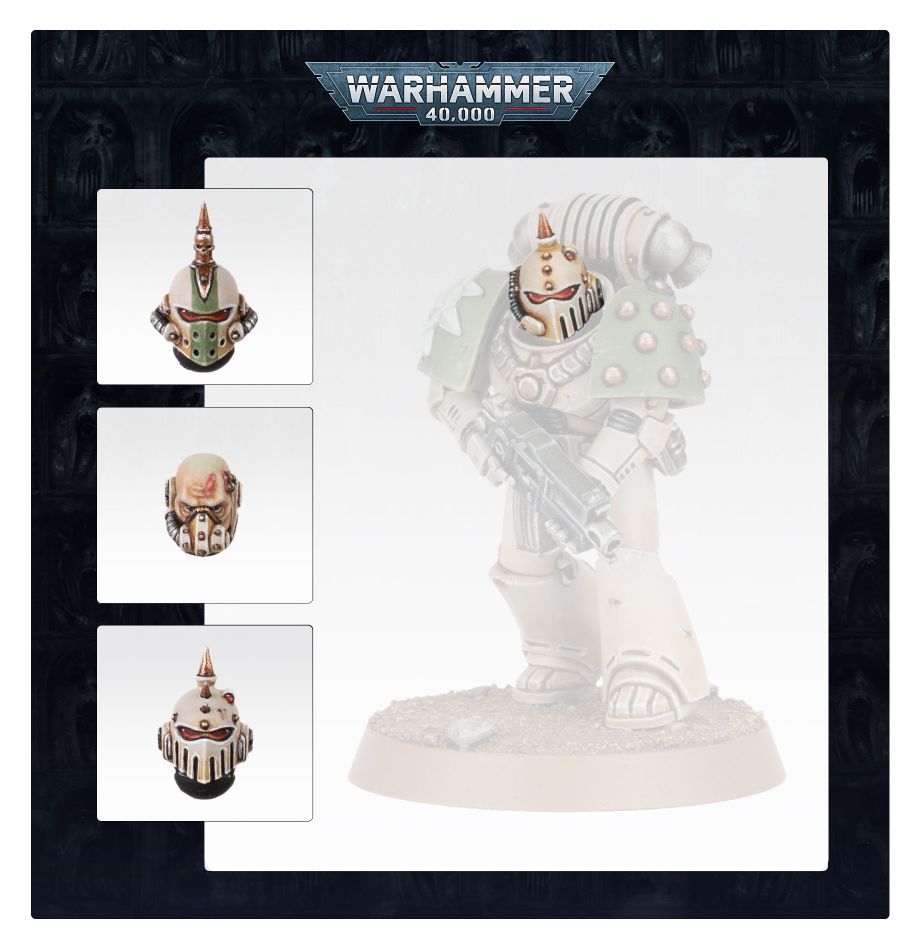 This upgrade kit can be used to customise Legionaries from the MKVI Tactical Squad set with new heads, replacing the standard helmets with Alpha Legion-specific headgear. The kit includes nine helmeted heads in three different designs,
