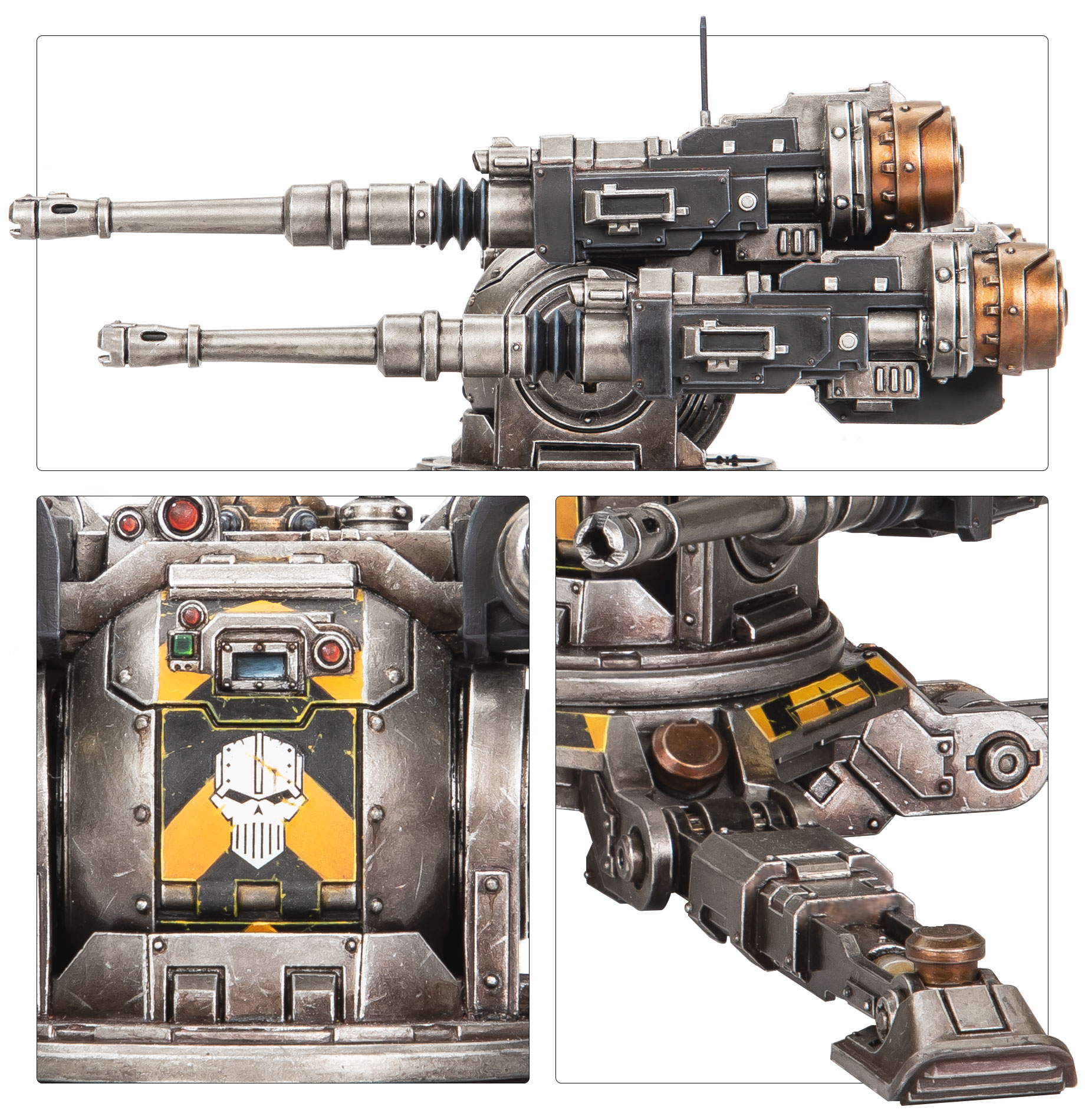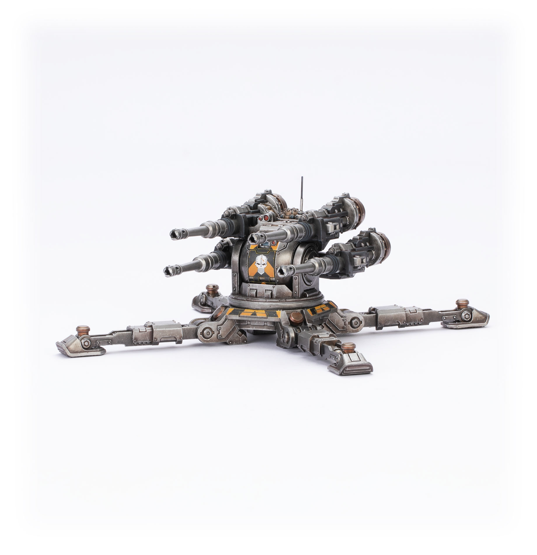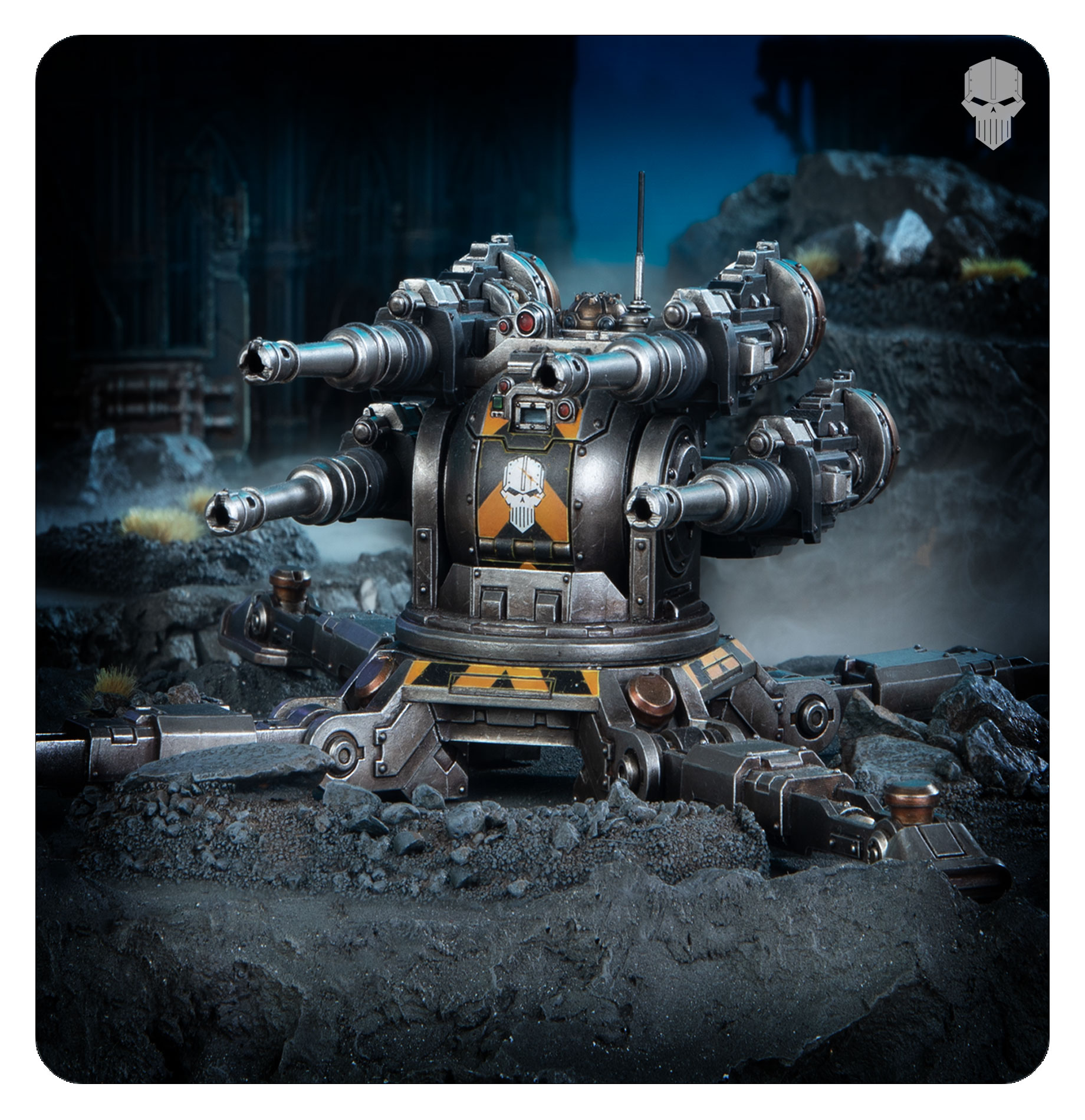 The Araknae Quad Accelerator Platform is a forward-deployed gun emplacement used by the Legiones Astartes. Once set up, their autocannon arrays excel at holding back the advance of the enemy and allowing other Legionary assets to establish positions deep in the heart of contested territory.