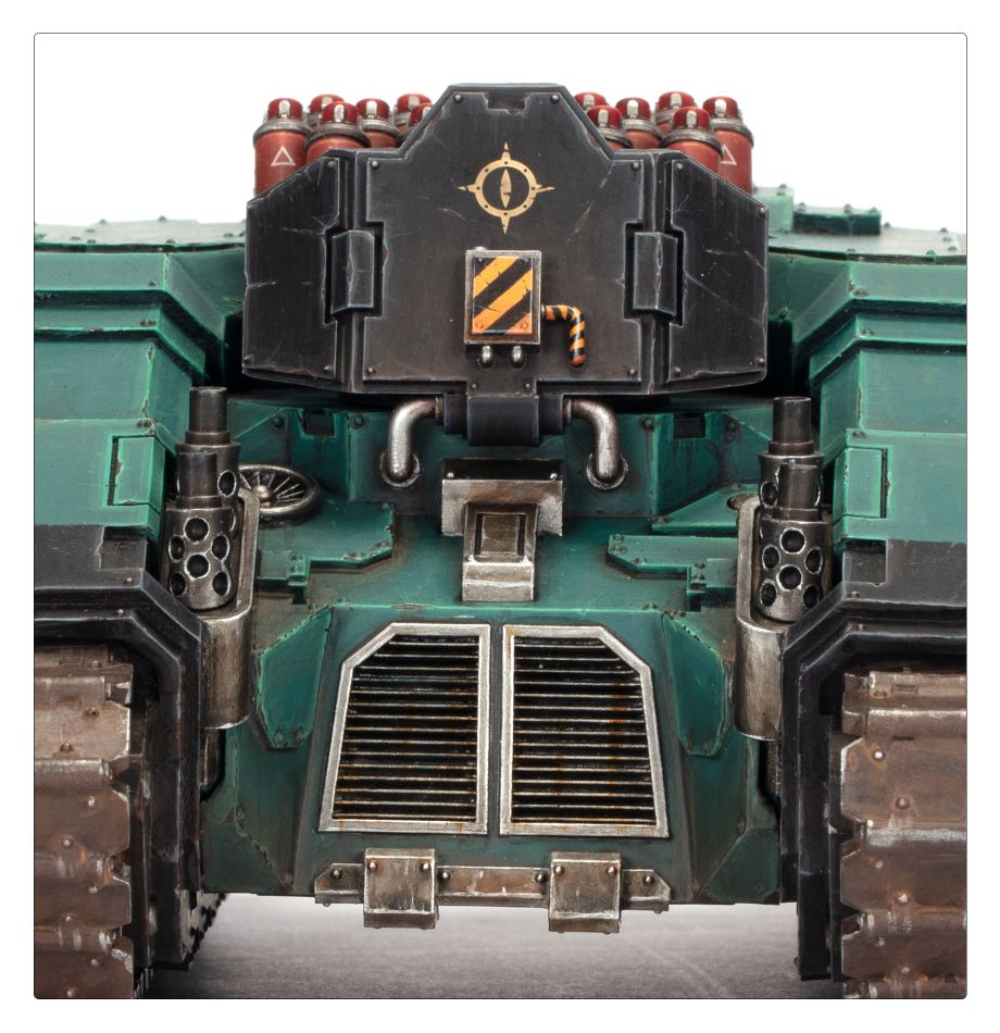 The Legion Arquitor is a heavy artillery platform designed to operate at the forefront of a Legiones Astartes advance. Equipped with a reinforced chassis and brutal short range firepower, it is called upon to break the most stubborn of fortifications or to annihilate massed enemy infantry and armour. The spicula rocket system fires rippling salvos of unguided missiles that crash down on enemy positions, creating massive cumulative blasts that can scatter whole formations.