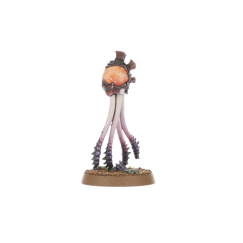 Biovores are living artillery pieces, swollen with the clutch of explosive Spore Mines that they nurture within their bodies. Upon anchoring itself to the ground with chitinous spurs, a Biovore undergoes violent spasms that expel its volatile offspring in high arcs as living ammunition. From there, the gas-bloated Spore Mines detonate in a shower of bone shards and acid rain, or else drift languidly down onto the battlefield, primed to explode whenever prey draws near.