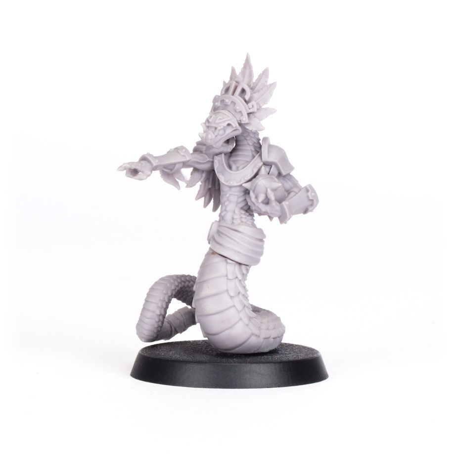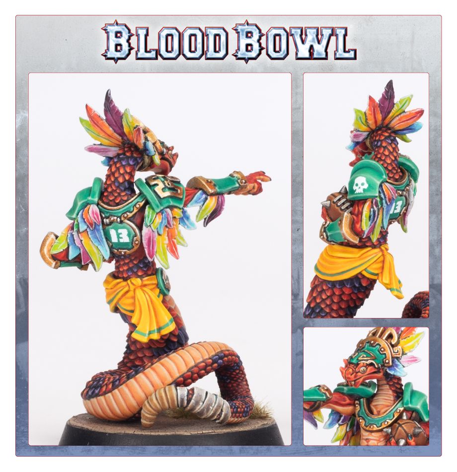 A mysterious Snakeman of origins unknown, Boa Kon’ssstriktr slithered from the jungles of Lustria and onto the Blood Bowl pitch. With an eye for tactics honed by watching countless games from the trees, this cunning player has risen to prominence through unorthodox – some would say downright sneaky – manoeuvres that cost his rivals the ball, the game, and their nerve.