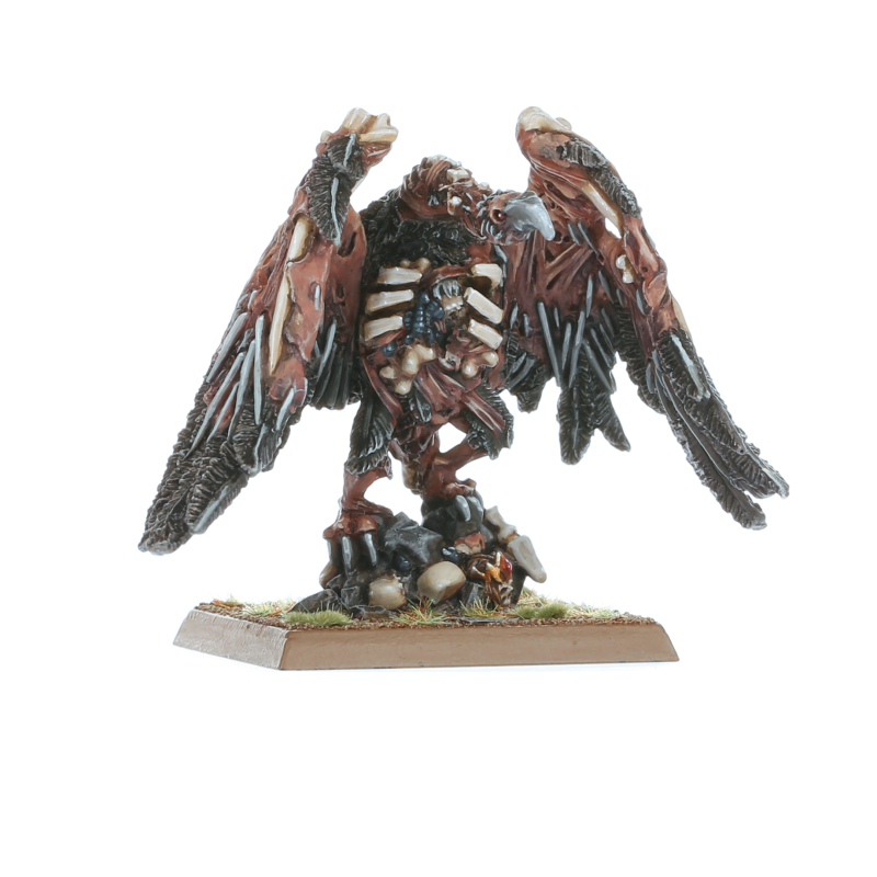 Carrion birds are sacred to the Nehekharan Mortuary Cult, and repulsive, vulture-like creatures with vast wingspans are entombed in the ancient crypts of many Tomb Kings. Raised into unlife by foul rites, their decaying forms circle over the battlefield, looking to feast on freshly slaughtered corpses… or create their own.