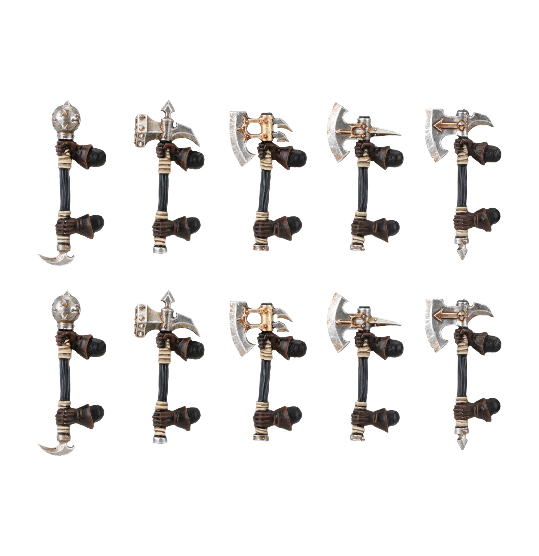 This metal upgrade set allows you to arm your Chaos Warriors with great weapons, providing extra punch for Warriors of Chaos armies in games of Warhammer: The Old World. This set includes 10 great weapons in five different designs – two great hammers, six greataxes, and a pair of two-handed maces – adding even more variety and