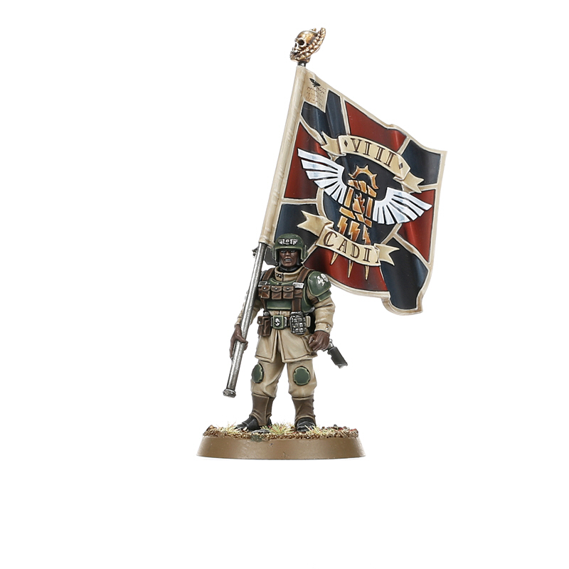 A Cadian Command Squad, consisting of officers and the veteran warriors who protect them, leads their elite force into battle. The core of the army comprises grizzled Kasrkin, armed with a potent arsenal of weapons. They are supported by Attilan Rough Riders, highly mobile cavalry who are devastating on the charge and able to easily outflank slower enemy units.