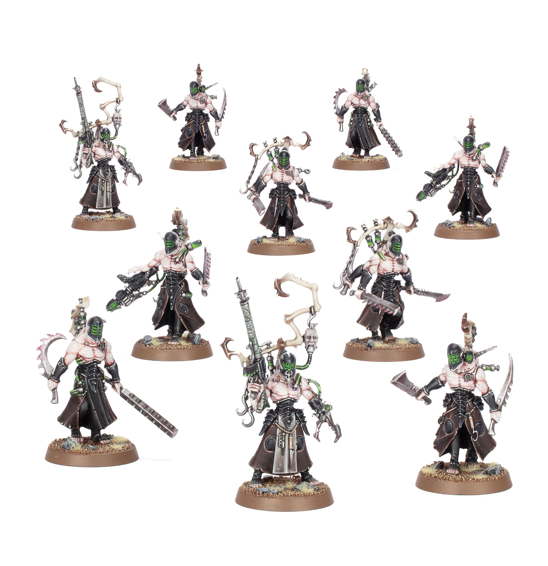 The Haemonculus Covens of the Drukhari are known for being sadistic, twisted flesh crafters. Their ranks are filled with mutated Wracks, supported by hulking Talos and Cronos pain engines – tortured creatures that revel in raiding realspace. Haemonculus masters are eager to test their creations in the crucible of battle, and war gives their agonised forces a chance to inflict pain and suffering upon their ill-fated victims.
