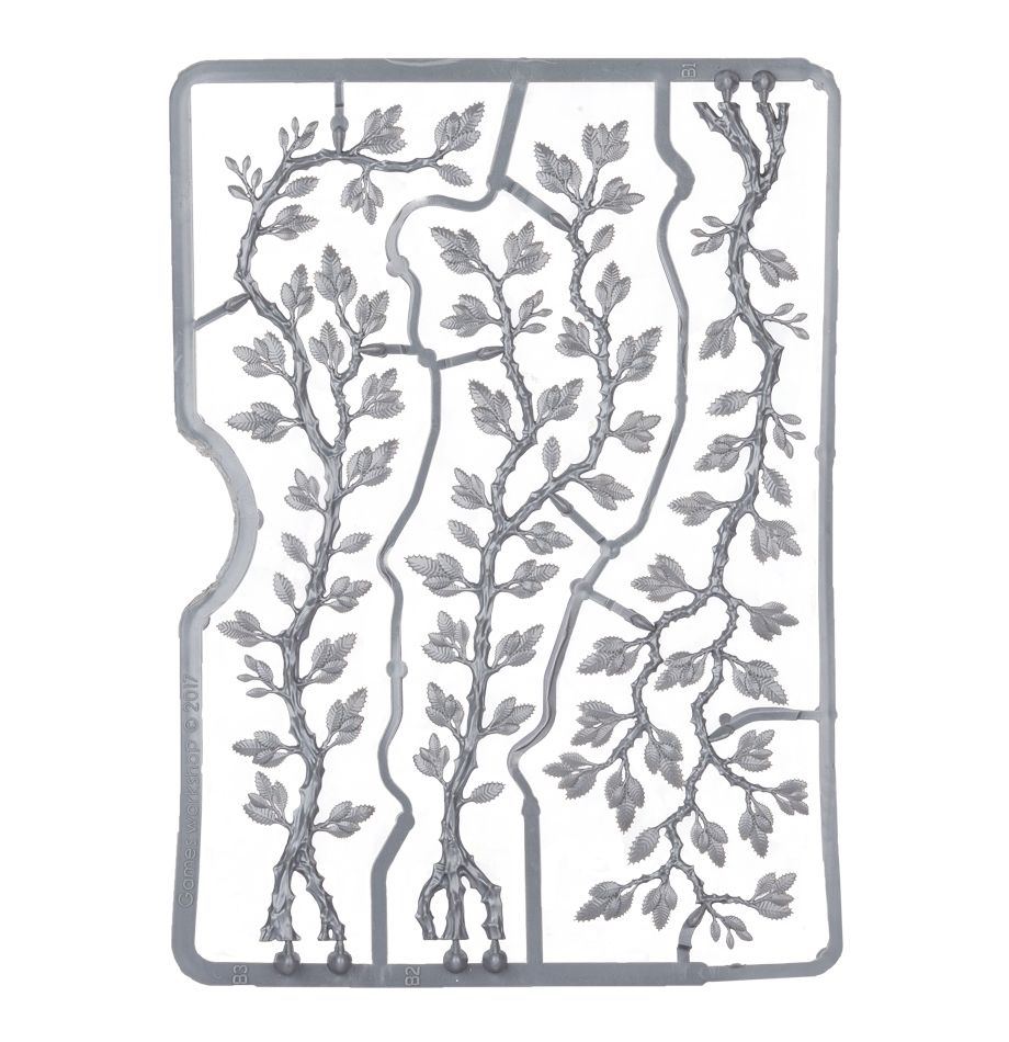 Detailed, flexible plastic scenery designed to be wrapped around scenery pieces and model bases to add that eerie sense of age and disrepair, this is a set of 12 Creeping Vines.