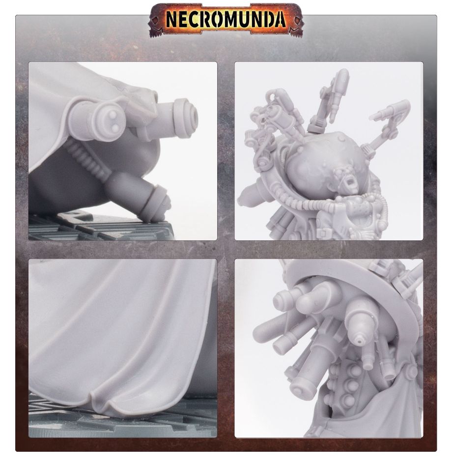 Spykers are equal parts telepathic eavesdropper and gibbering psychic powerhouse, engineered by House Delaque to serve its gang leaders. In a process that can take months or even years, an individual with a glimmer of psychic potential is dosed up with concentrated Ghast solutions – strapped into a medicae harness as their body atrophies and their cranium expands. Those who don’t suffer catastrophic biological collapse become Spykers – too weak to stand, these non-sanctioned psykers use their powers to glide across the battlefield and unleash terrifying mental assaults.