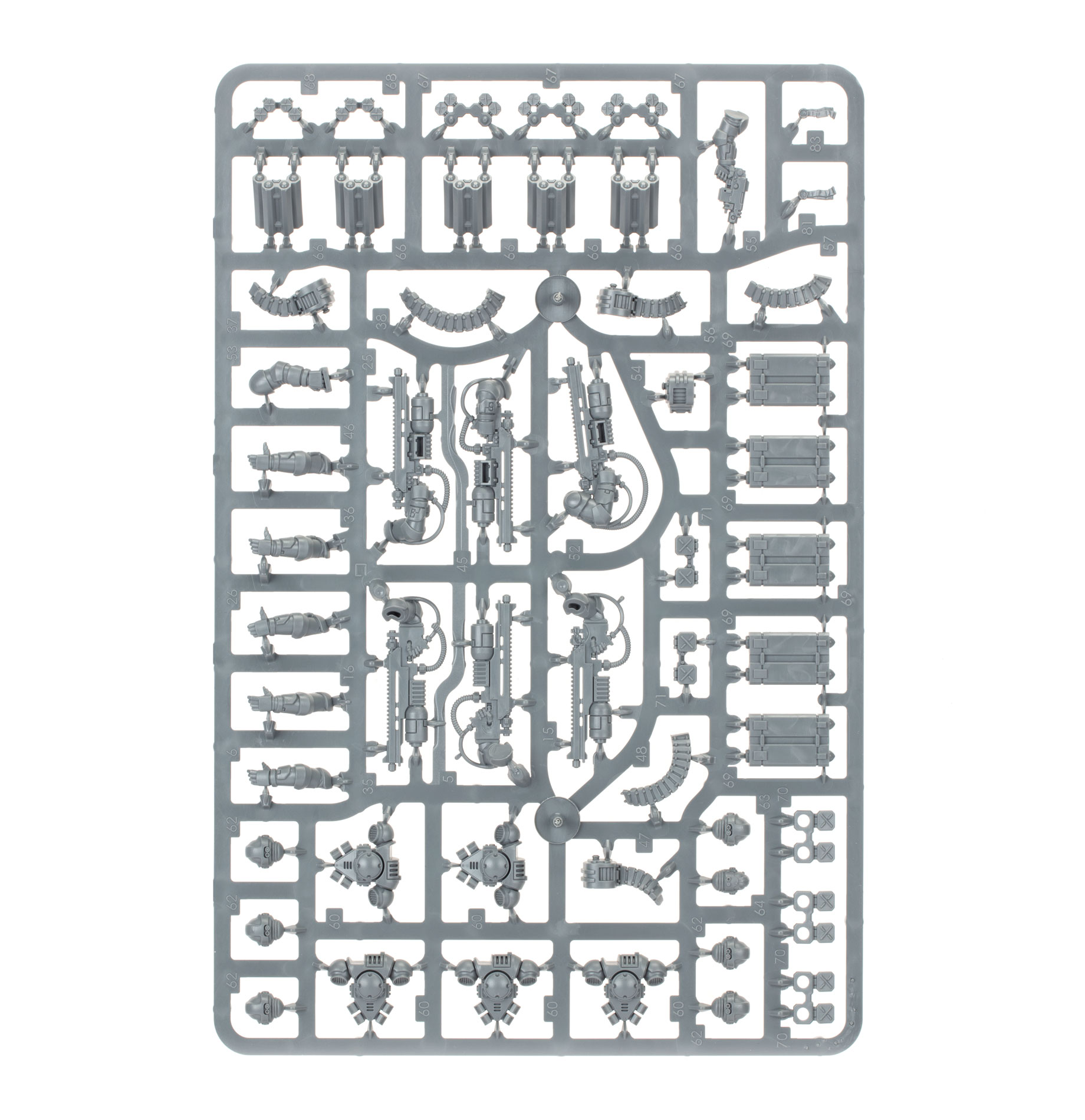 This multipart plastic kit builds five Desolation Marines, dedicated heavy weapon troops. Each model’s rocket launcher can be loaded with either infantry-shredding superfrag or tank-busting superkrak rockets, and features an underslung castellan launcher. You can build one model as a Sergeant,