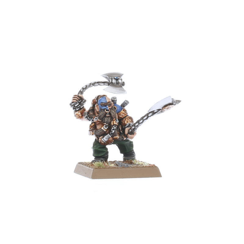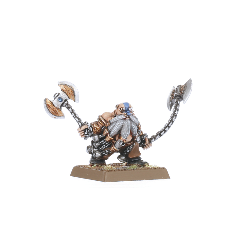 Even amongst the crazed, wild-eyed Slayers, Doomseekers are considered unhinged loners. Covered head-to-toe in runic tattoos of protection and warding, Doomseekers throw themselves into battle with reckless abandon, setting about their foes with axes attached to chain lengths aptly named the whirling blades of death.