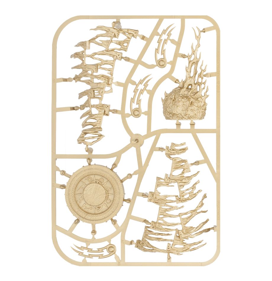 The cataclysmic necroquake of Shyish has flooded the Mortal Realms with the powers of the aether. Incantations summon forth new conjurations of unprecedented power and frightful sentience, but beware – such endless spells can be treacherous, as likely to turn upon their caster as they are to devastate the enemy. From unleashing disembodied gnashing jaws to devour your foes, to raising prismatic barricades to protect your flanks, doing battle in the time of the Arcanum Optimar is unlike anything that has come before. This multi-part plastic kit contains the components necessary to assemble 3