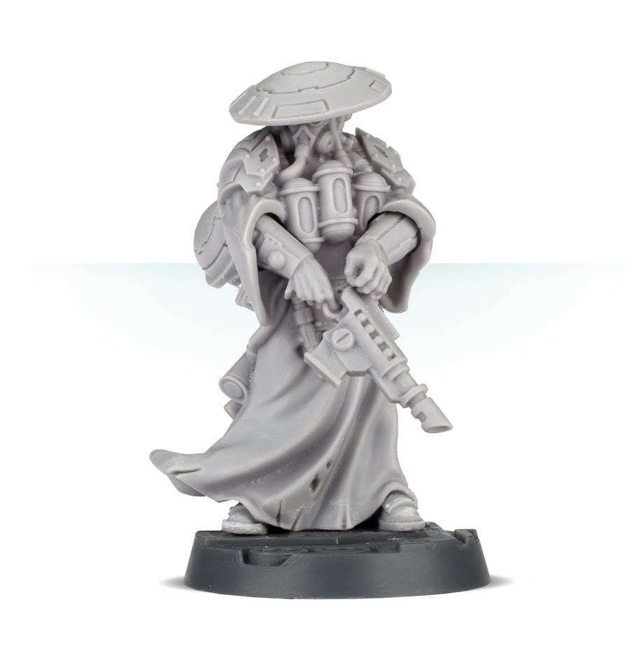 Eyros was once an underhive dome-rigger from Cogtown, one of the sweating, emaciated souls responsible for repairing the rusting pipe networks that fed the dismal settlement. Deep down in the sump wells, close to hive bottom, he found and donned a strange archaeo-rig which, though it gave him strength and life, it also gave him a burning thirst. As it turned out, while water can be found in many things, few things in Necromunda have quite as much as humans. Eyros leaves only dust and scrap in his wake, searching endlessly for fresh victims from which to strip every morsel of fluid. These days