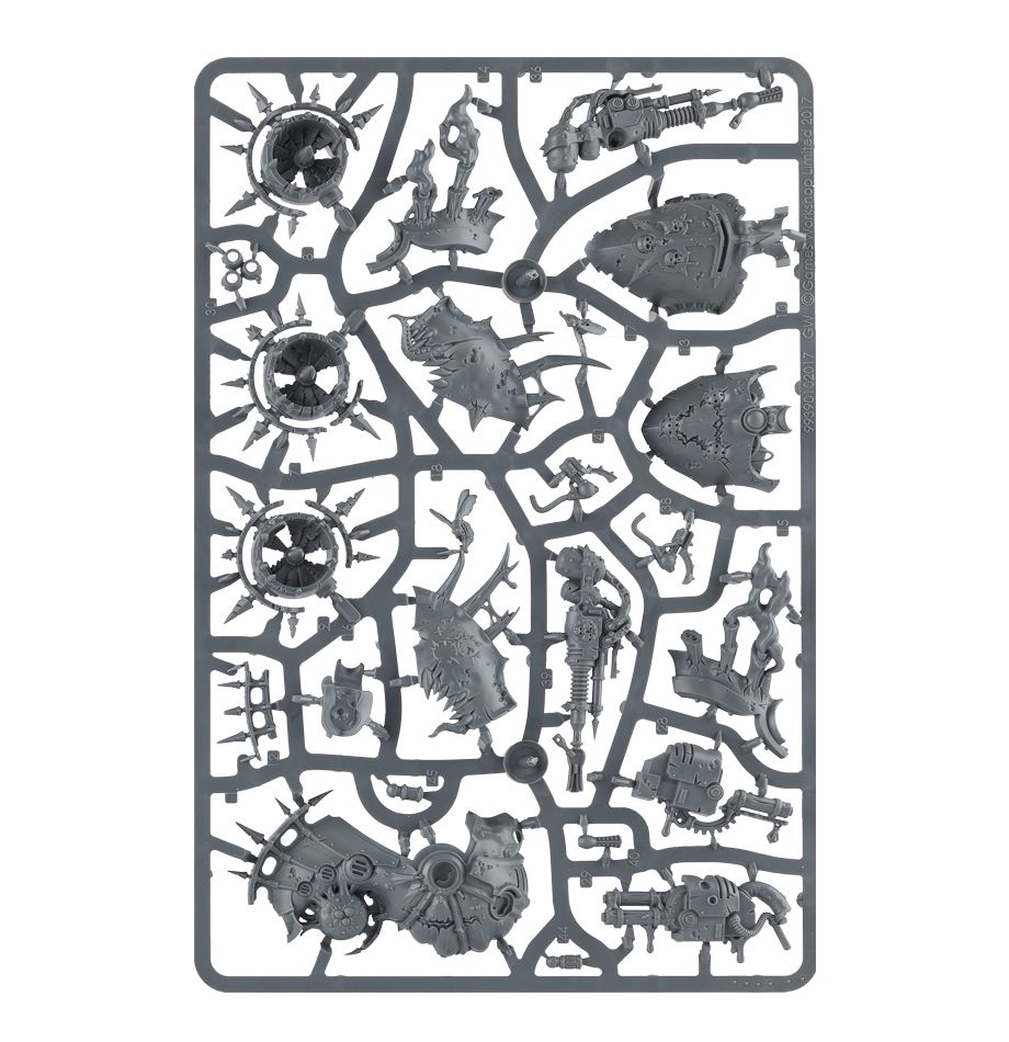 This multipart plastic kit builds one Foetid Bloat-drone, a hovering Daemon Engine for your Death Guard armies in games of Warhammer 40,000. These intimidating amalgamations of machine and rotting meat can be constructed with your choice of three different carapaces and two different plague probes,