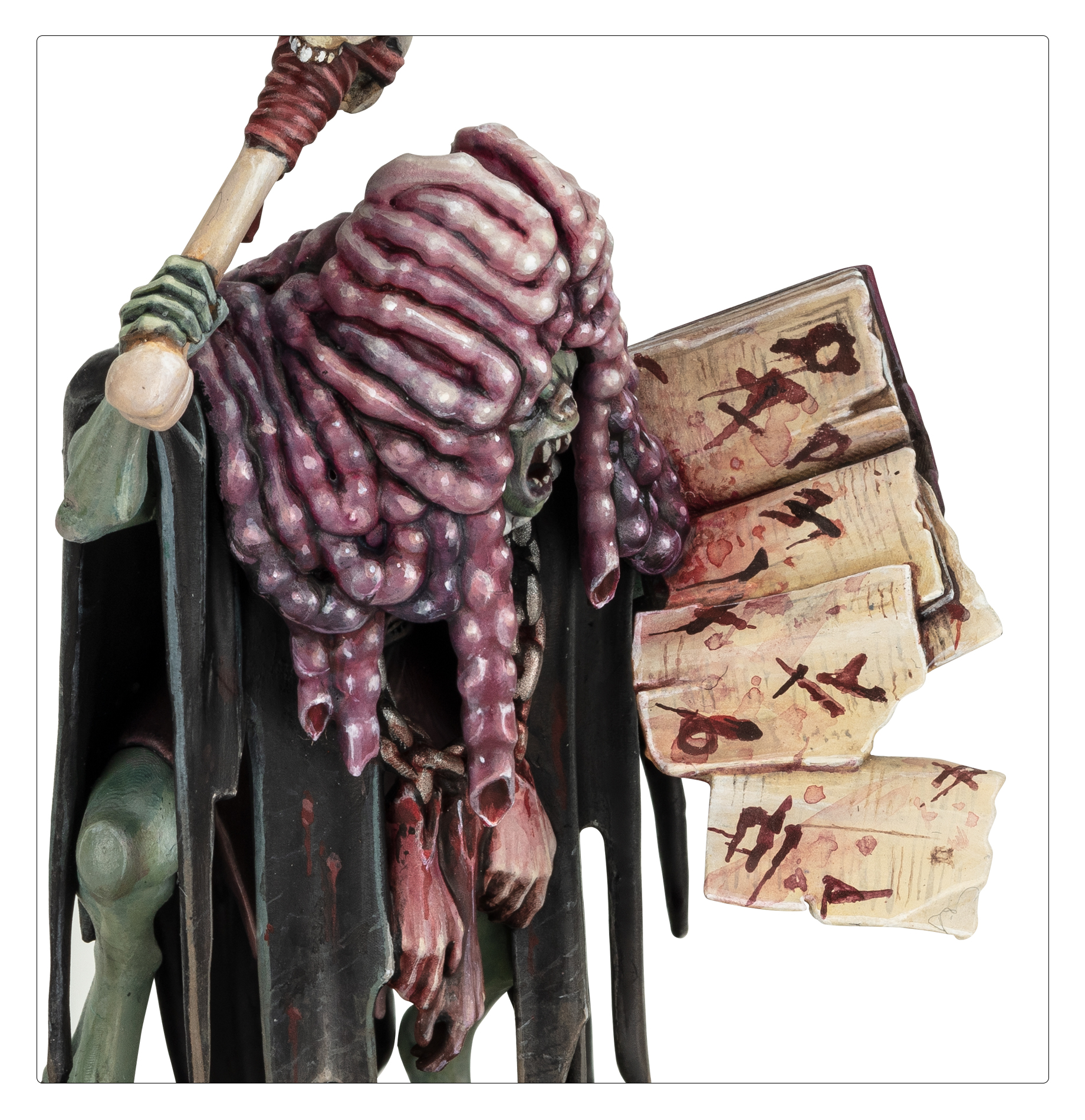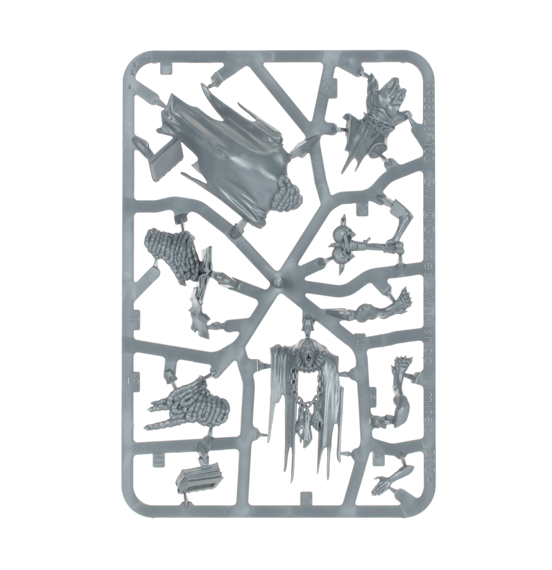 This multipart plastic kit builds Grand Justice Gormayne, a horrifying vampiric arbiter of the Flesh-eater Courts. Swinging a gore-streaked gavel fashioned from well-gnawed bones, the Grand Justice calls for order and cracks