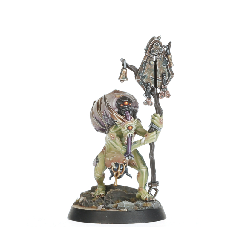 The disease-ridden Phleghmus Potbelly leads this warband and sees his duty as a simple one – to spread the blessings of Nurgle across the realms. Helping Phleghmus cultivate such gruesome cycles are his fellow Plaguebearers Slunge, Maggoty Strewg, Bug-eyed Dripterus, and the daemon-fly Squort, who revels in injecting vileness directly into living bodies.