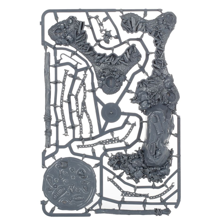 Crafted from the melted-down weapons of defeated enemies and blessed with the strange, hungry essence of the Gulping God, the Great Mawpot is a Mawtribe’s most sacred possession. All manner of gruesome ingredients are thrown into this metal cauldron and boiled up into a thick magical broth that reinvigorates any ogors who taste it.