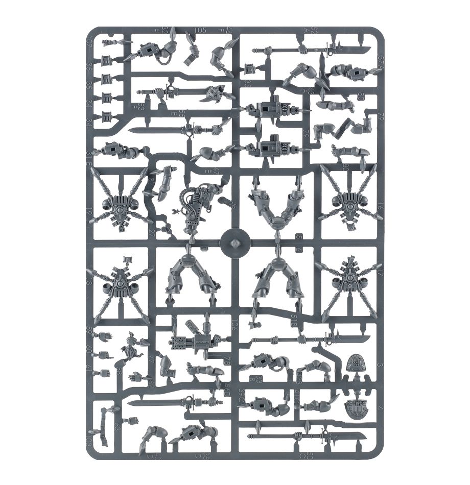 This kit builds ten Interceptors armed with Nemesis force swords and storm bolters, one of which can be assembled as the unit leader, an Interceptor Justicar. Any model can replace their Nemesis force