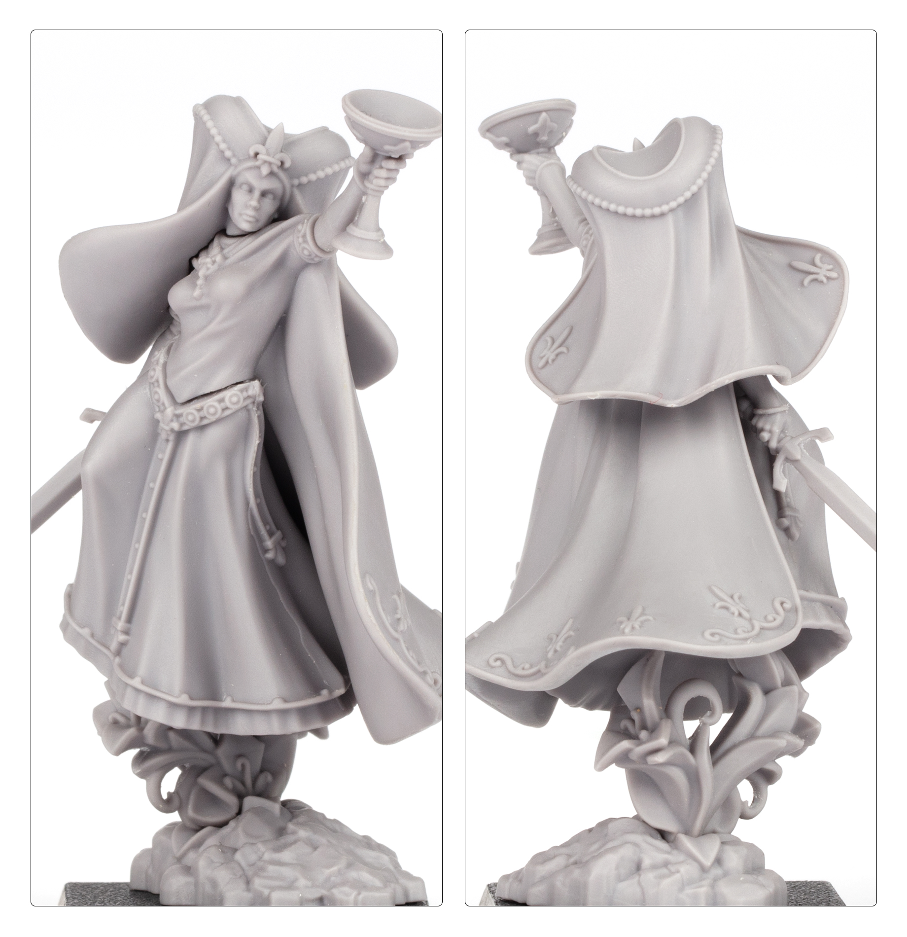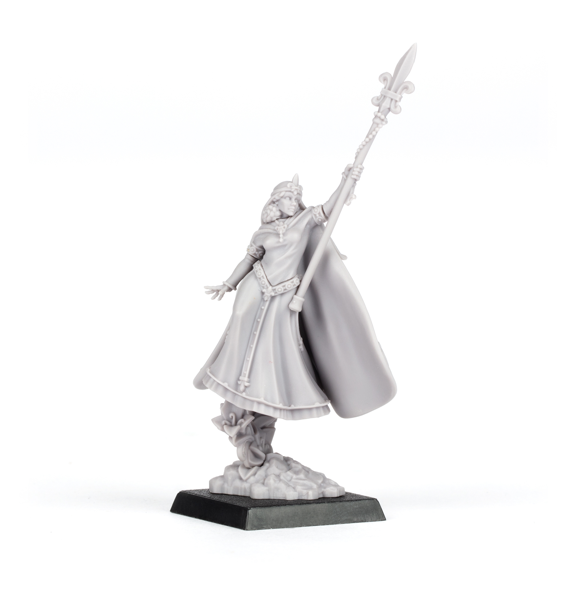 This multipart resin kit builds one Handmaiden of the Lady, a Wizard for your Kingdom of Bretonnia army. She can represent either a Prophetess or a Damsel, and is armed with a hand weapon. You’ll find two options for the head, one with a