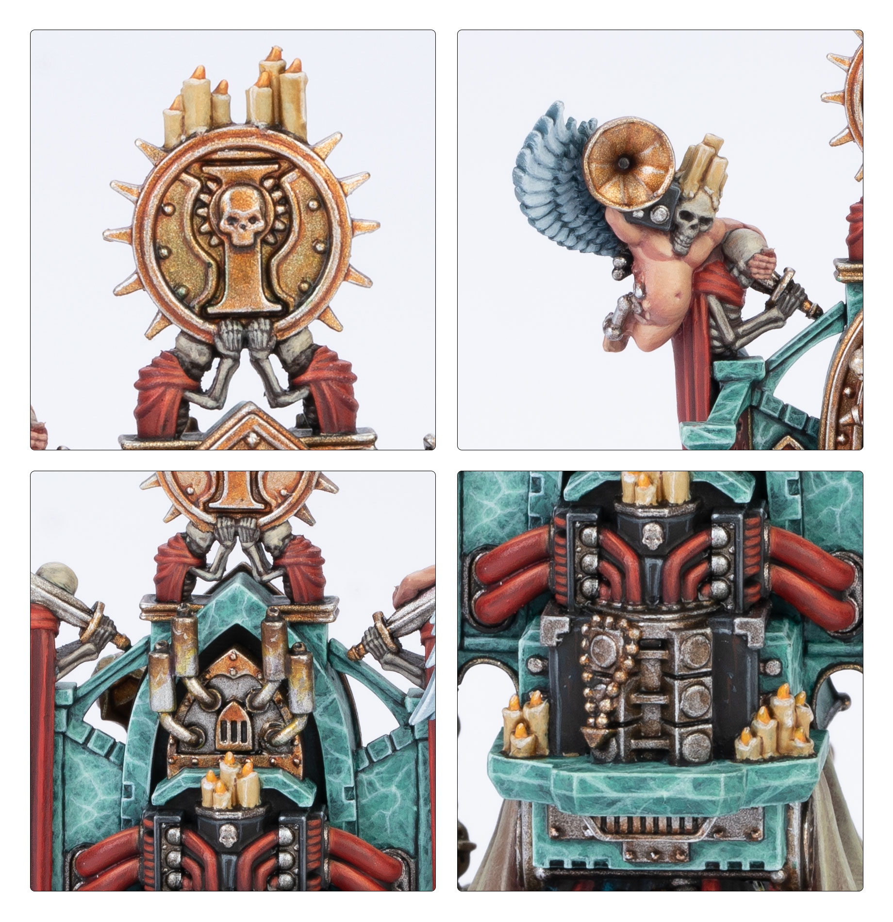 This multipart resin kit builds a Prima Materis, seated in an opulent mobile throne, as well as a pair of intimidating Frateris Bodyguards. They can be hired by any gang affiliated with House Ko’iron, or they can be used as part of an Outcasts Delegation Gang. They’re handy in a scrap,