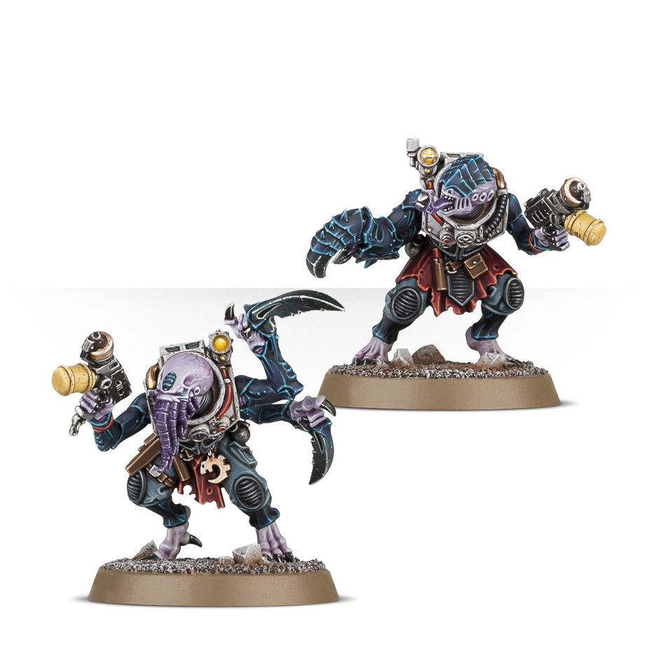 Hybrid Metamorphs scuttle forward with preternatural speed, weapon limbs thrashing and biomorphs pulsing with toxins. Spontaneously spawned in a cult’s latter cycles, they are thought to be created when a Tyranid hive fleet nears a prey planet that is host to a Genestealer Cult. When the day of the uprising arrives, it is the Hybrid Metamorphs that take pride of place upon the front line. In a storm of iron-hard claws, sinewy tentacles and slashing talons they crush and hack their way through everything in their path, an inspiration to the broodkin that worship them as sainted heroes of the