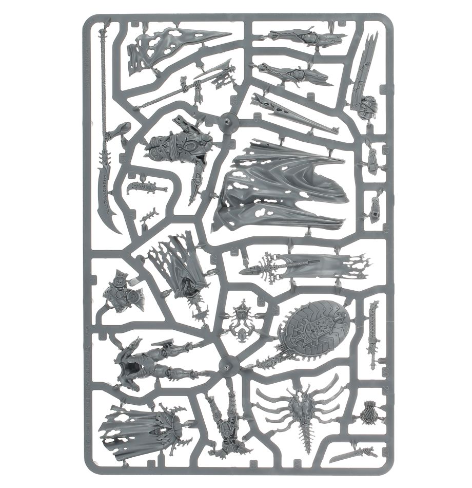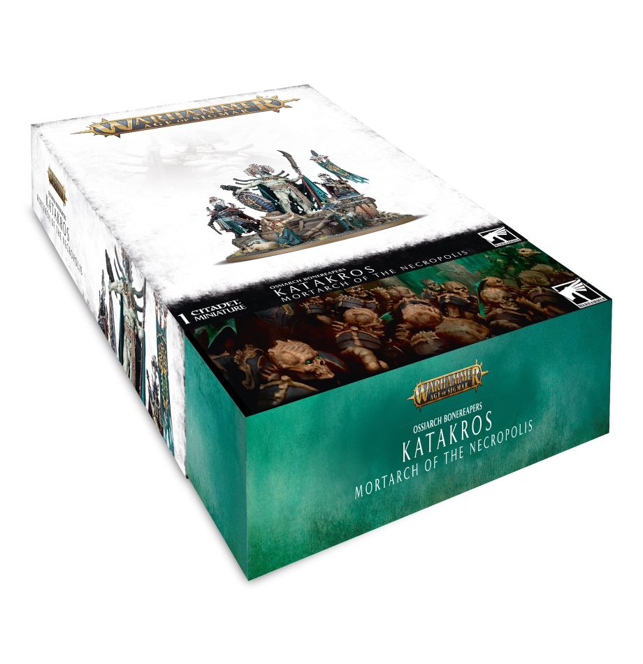 Katakros stands in the centre of a sculpted base surrounded by his most trusted retainers – the Prime Necrophoros, the Liege-Immortis, the Gnosis Scrollbearer and the Aviarch Spymaster. Armed with Inda-Khaat and the Shield Immortis, he towers above them all. He forms the perfect centrepiece of any Ossiarch Bonereapers
