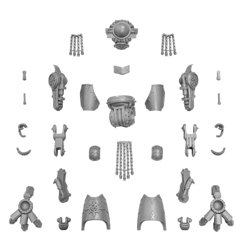 Forged by the most malign Warpsmiths and Dark Magos as an act of their devotion to the supreme lord of blood and battles, Kytan Daemon Engines stride across the battlefields of the 41st Millennium eviscerating all who dare oppose them until their hides of brass and blackened iron are bathed in blood and hung with gore. Their thirst for battle is rarely quenched, and they will continue to slaughter foe after foe until the battlefield is slick with blood and little is left alive.