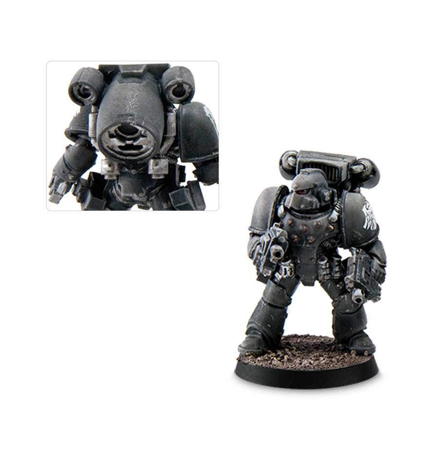 The jump pack, common amongst Space Marine Assault squads, is sometimes utilised by Destroyer squads. The increased mobility they provide enables the Destroyers to deploy more rapidly into battlefield positions, unleashing their destructive arsenal upon the foe.