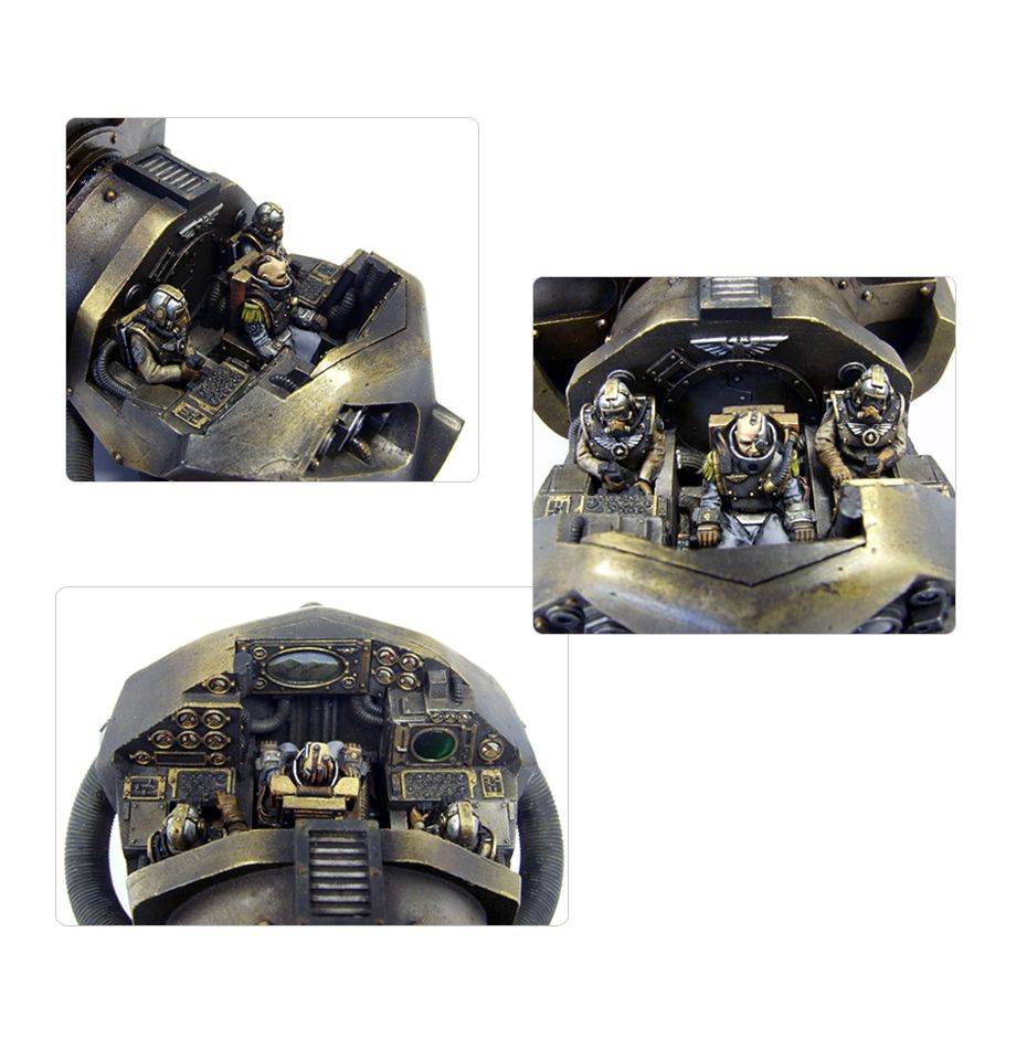 This extremely detailed model of the Mars Pattern Reaver Titan includes a crew of a Princeps and two Moderati, a Tech Priest and three hard wired Weapon Servitors.