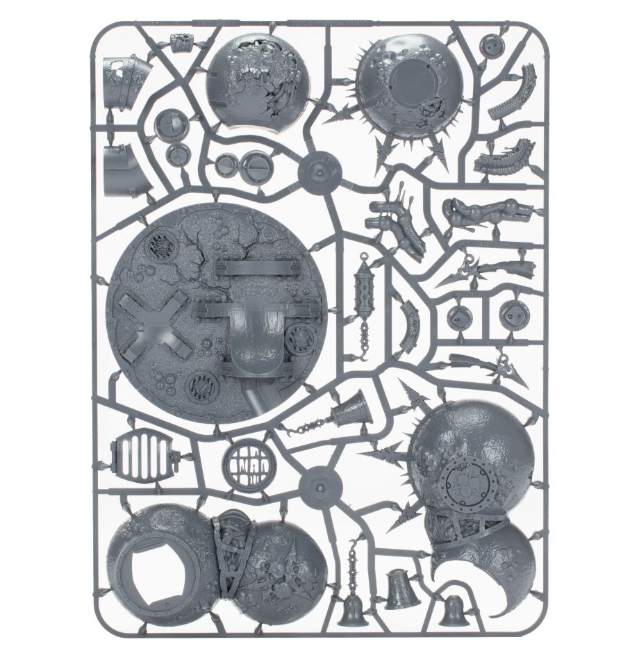 This multipart plastic kit builds a Miasmic Malignifier – two pieces of themed terrain for your Death Guard armies in games of Warhammer 40,000. Made up of a main chimney and a smaller pox furnace, it’s a great way to bring the blessings of Nurgle to your tabletop. As well as looking suitably