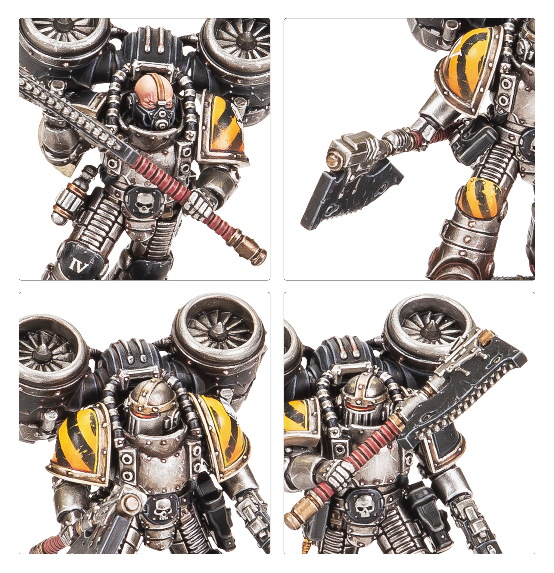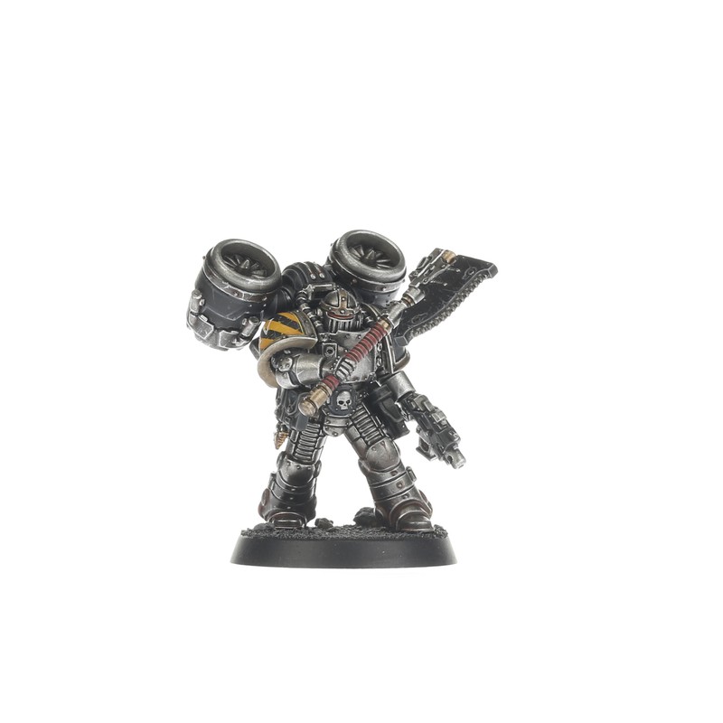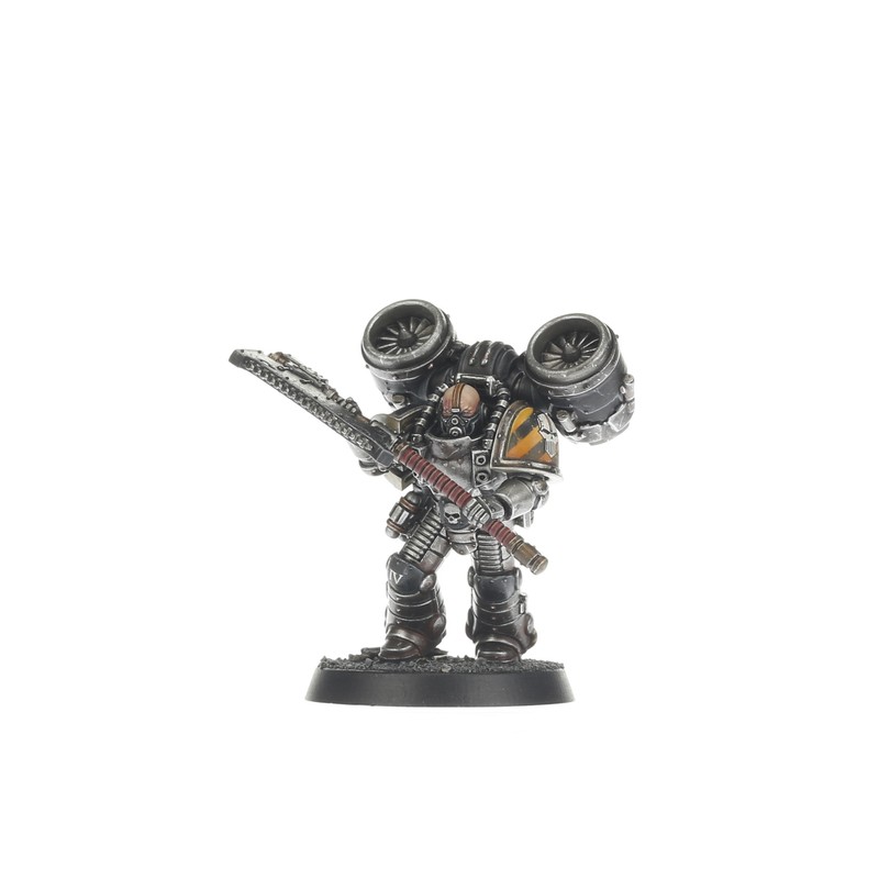 Jump pack-equipped assault squads are rapid-attack soldiers with wargear optimised for close-quarter fighting and hit-and-run tactics. The use of jump packs allows assault squads to move with great speed across the battlefield and impact the enemy line with savage force, leaping past intervening terrain and open defences to engage their adversaries in bloody melee.
