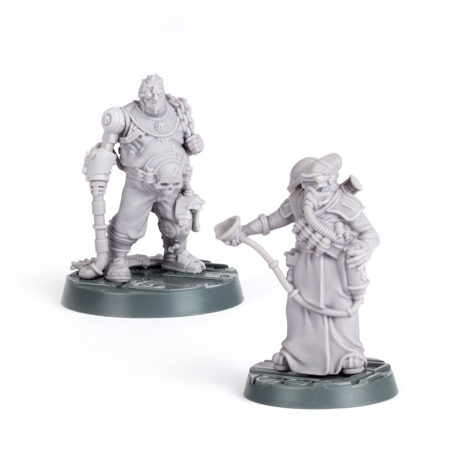 Many gangs employ experts to aid in their underhive wars, hired professionals with unique skills. Chem Dealers are dedicated suppliers for a gang in need of chems – in exchange for protection and creds, they can secure a variety of chemical enhancements both legal and illicit, from stimms to frenzon… until a deal goes wrong. Those gangs who herd savage Brutes into battle benefit greatly from the services of a Brute Handler. Often drawn from ex-pit fighters or factorum overseers who know how to get the most out of muscle, these vicious instructors can train the most dull-witted hulks to heed