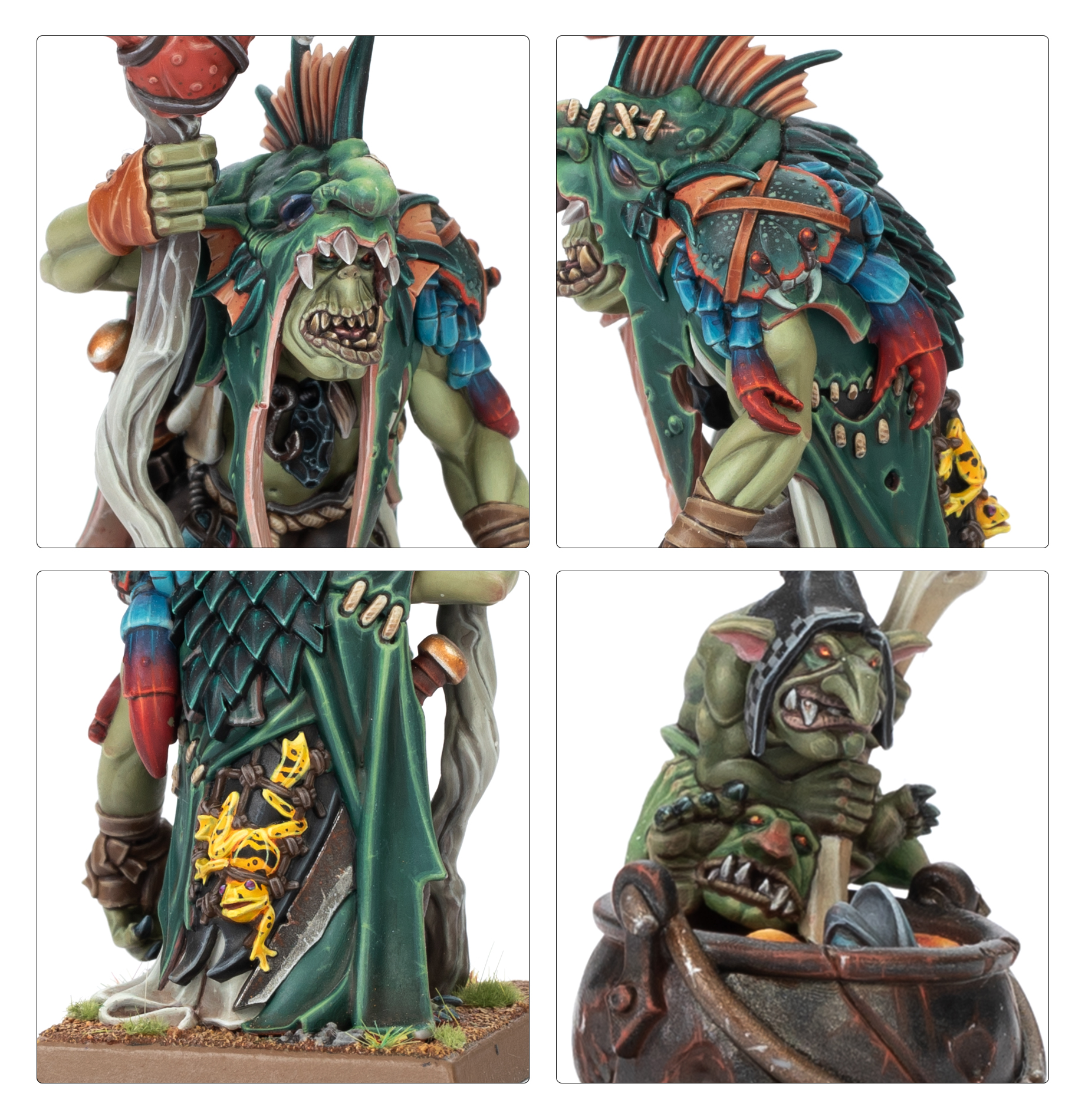 This multipart resin kit builds Ogdruz Swampdigga, a Troll-loving wizard of the Orc and Goblin Tribes in Warhammer: The Old World. This hulking