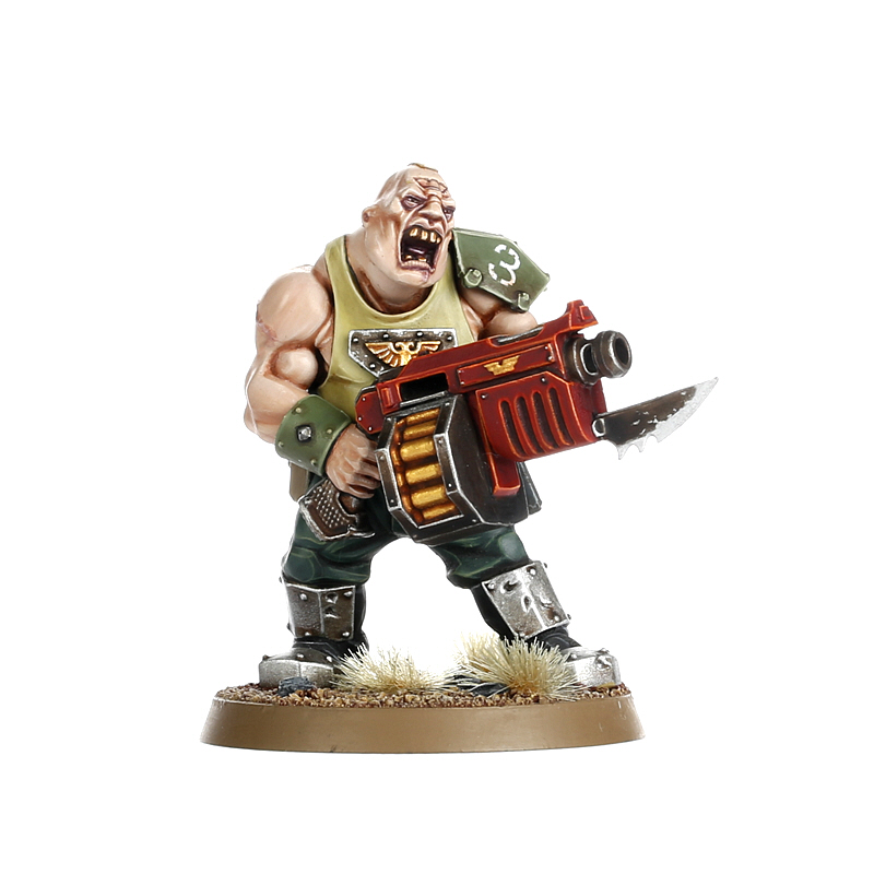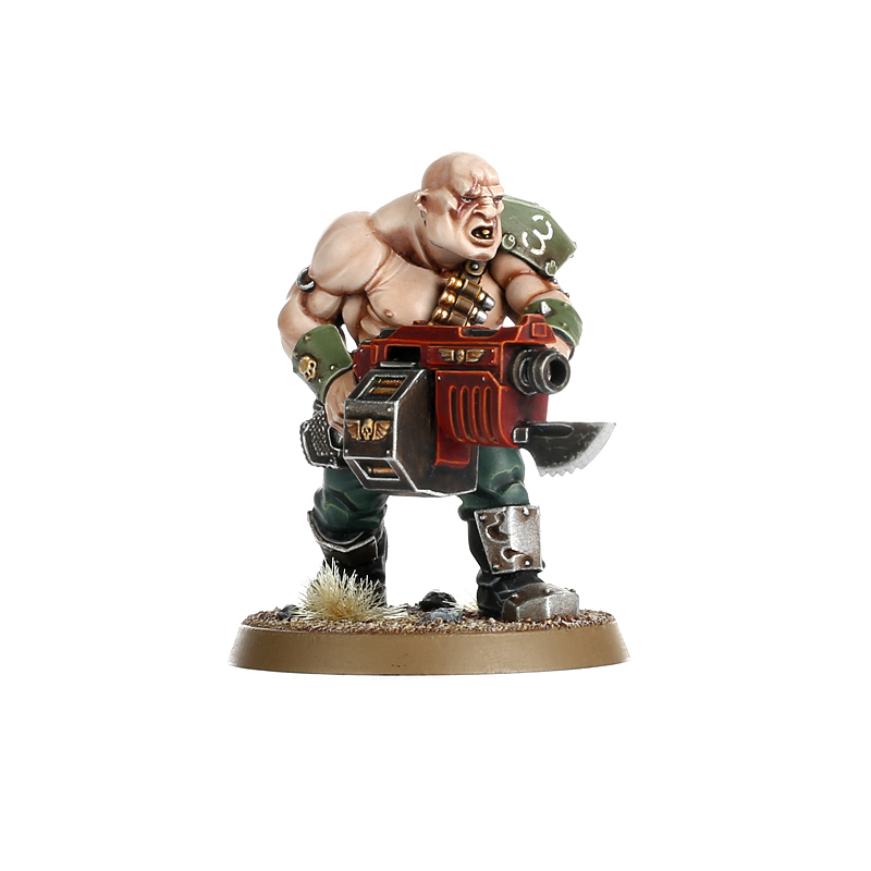 Ogryns are simple beings – abhumans adapted for brute strength and resilience on high-gravity worlds. In battle, their instincts rarely lead them beyond hitting the enemy as hard as possible. These qualities see them fielded as formidable shock troops whose hulking physiques allow them to shrug off and inflict tremendous damage, armed with rapid-firing ripper guns that are built to withstand use as improvised clubs.