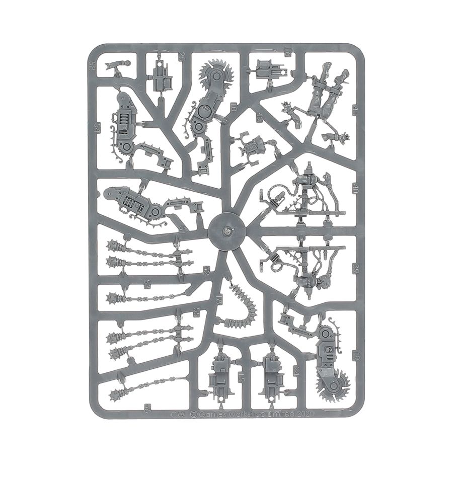 Piloted by sinners and heretics still able to seek redemption, Penitent Engines charge towards the foe heedless of danger, knowing that only through death can absolution be earned. The arms of the engine, mounted with enormous flamers, blaze a trail of fiery destruction as it thunders forwards. Upon reaching the enemy’s battle lines, the pilot is pumped with chemical and synaptic signals that induce unfathomable guilt, forcing them into a rampage that leaves nothing but death and carnage in