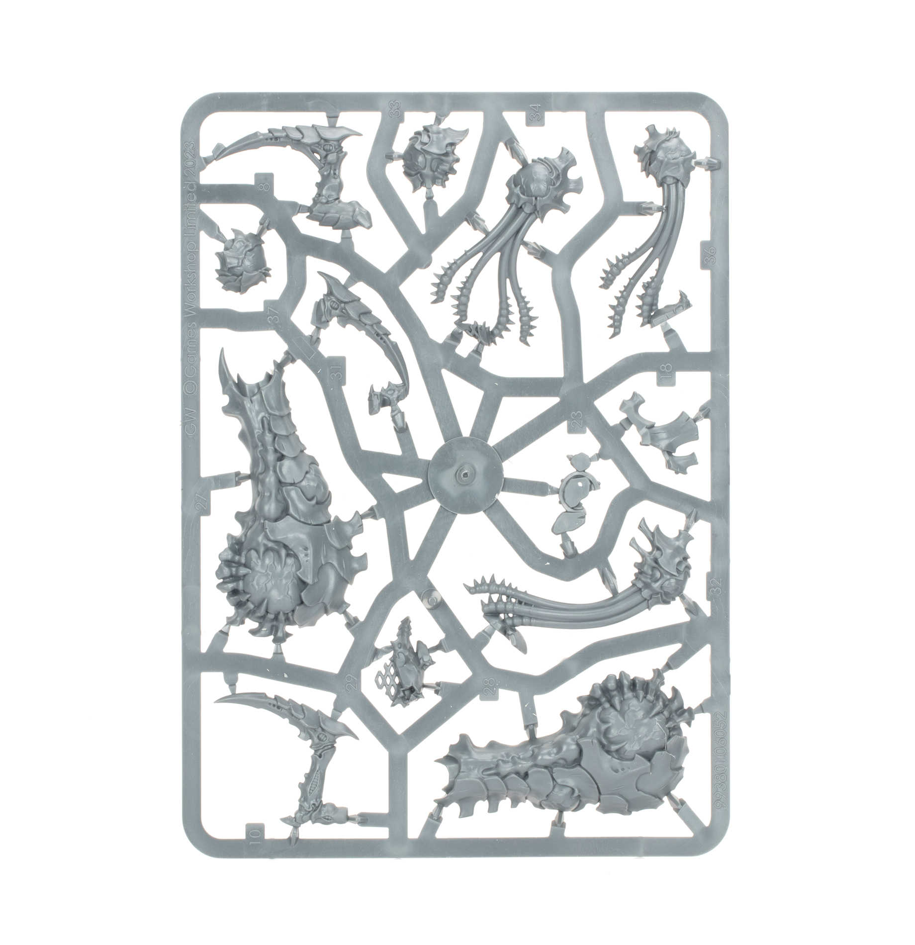 This multipart plastic kit builds a Pyrovore – a sentient Tyranid flame weapon – as well as three floating Spore Mines to use separately. The