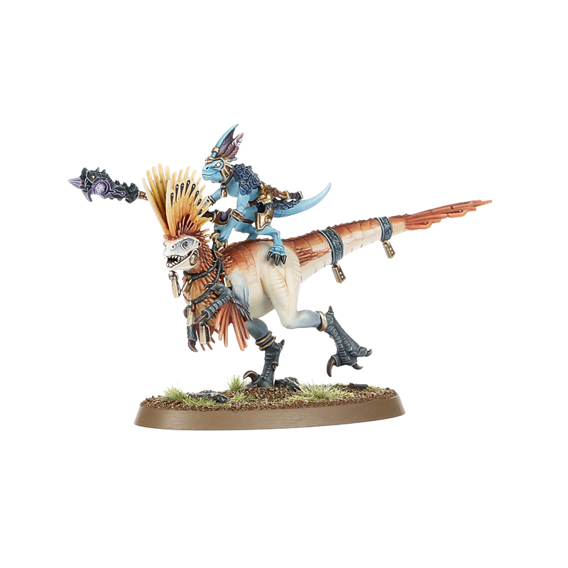 This multipart plastic kit builds five Raptadon Chargers – skink mage-knights mounted atop swift hunting beasts. Every Charger wears a sacred headdress and wields a mystical Tepok lance – the skinks and their raptadon steeds each have