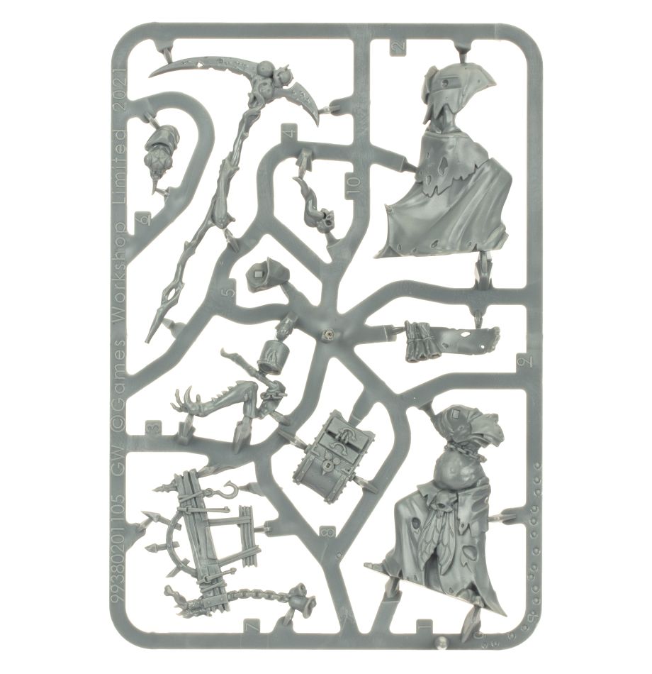 Maggotkin armies rarely broach the battlefield without a Rotbringer Sorcerer. Acting as a locus of foul arcane magics, these sorcerers hack up phlegm-ridden incantations that pox their enemies. In the wake of the Arcane Optimar, many of these spellcasters also unleash twisted, plague-ridden endless spells that they have bent to