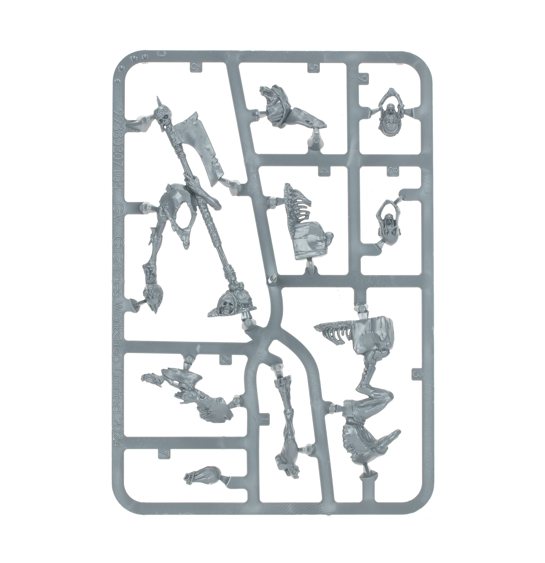This multipart plastic kit builds a Royal Decapitator, a ghoulish headsman who serves the royalty of the Flesh-eater Courts. The Decapitator cleaves through the necks of the mightiest opponents with a massive, rusted axe, driving ghouls around them into a