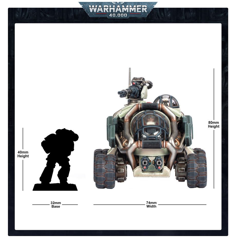 Designed to survive the worst that hostile worlds and alien predators can throw at it, the Sagitaur is a rugged ATV ideally suited for scouting operations and swift, armoured offensives. Sagitaurs mount a remarkable amount of firepower for vehicles of their size, and can even knock out enemy battle tanks – all while maintaining transport capacity for small expeditionary squads.