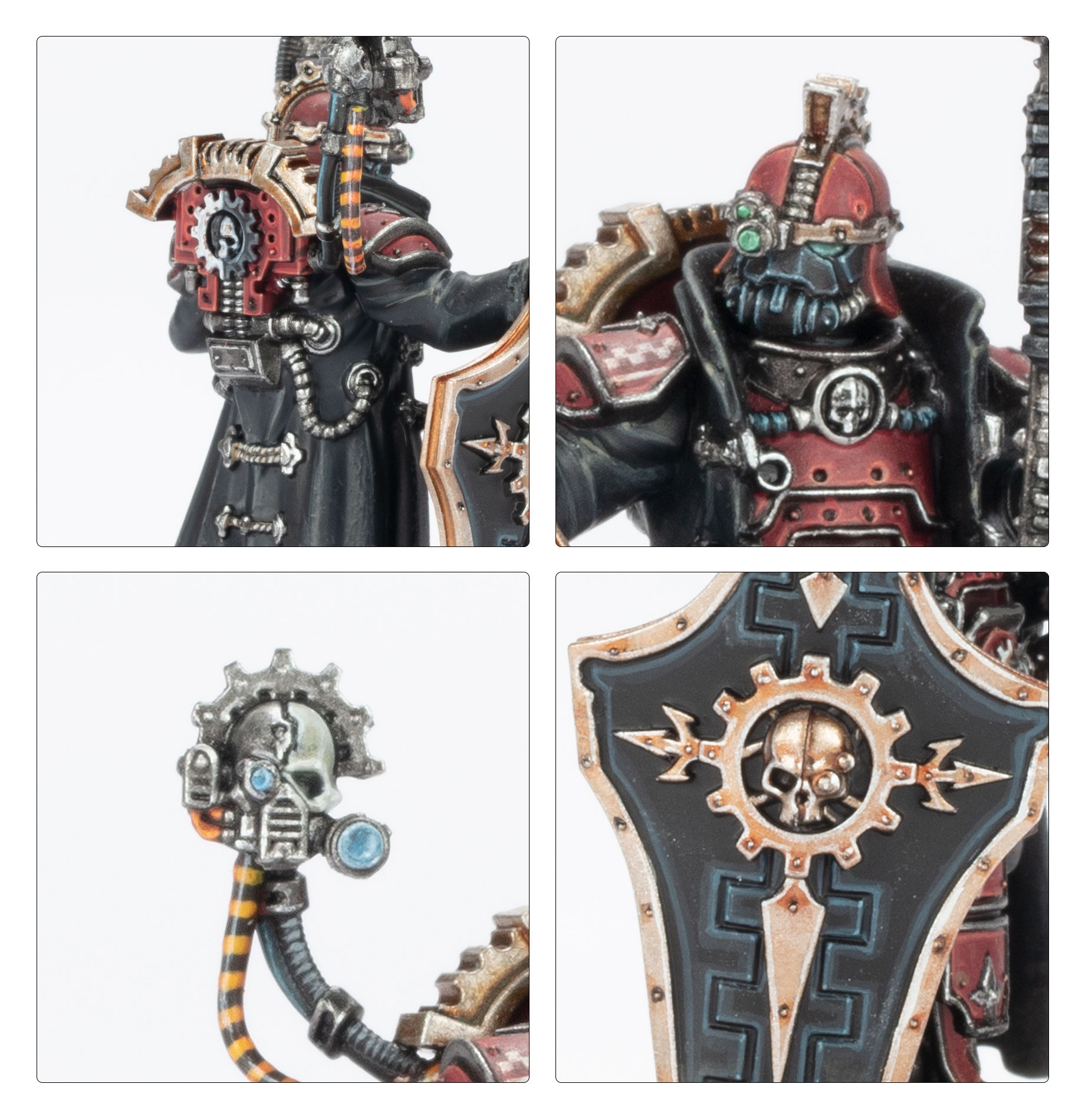 A Secutarii Axiarch is a field officer that will often take tactical command of larger forces. They have been rebuilt so that very little of the living being remains – becoming an inhumanly stalwart, nigh indestructible soldier likened to the god-engines they are charged to protect, in both fabricated body and machine spirit-ridden psyche.