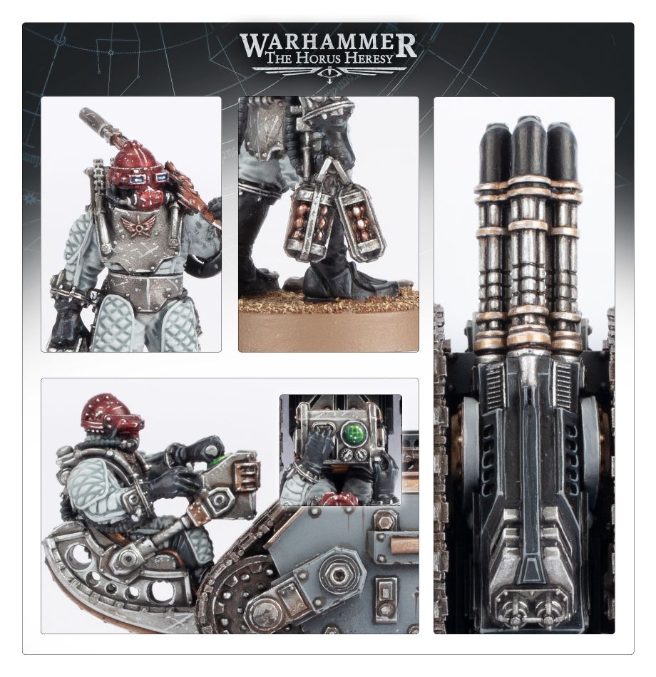 The armies of the Solar Auxilia make extensive use of the Rapier weapons carrier, employing its rugged track assembly to transport support weaponry too heavy for infantry. The Rapier’s sheer versatility sees it deployed on battlefields across the galaxy alongside all manner of forces, from vanguard expeditions to full-scale planetary assaults. The Solar Auxilia mount a variety of weapons systems on the carrier – the most ubiquitous of these is a four-barrelled multi-laser, which scythes down enemy hordes before they can reach the front lines of the Infantry Tercio.