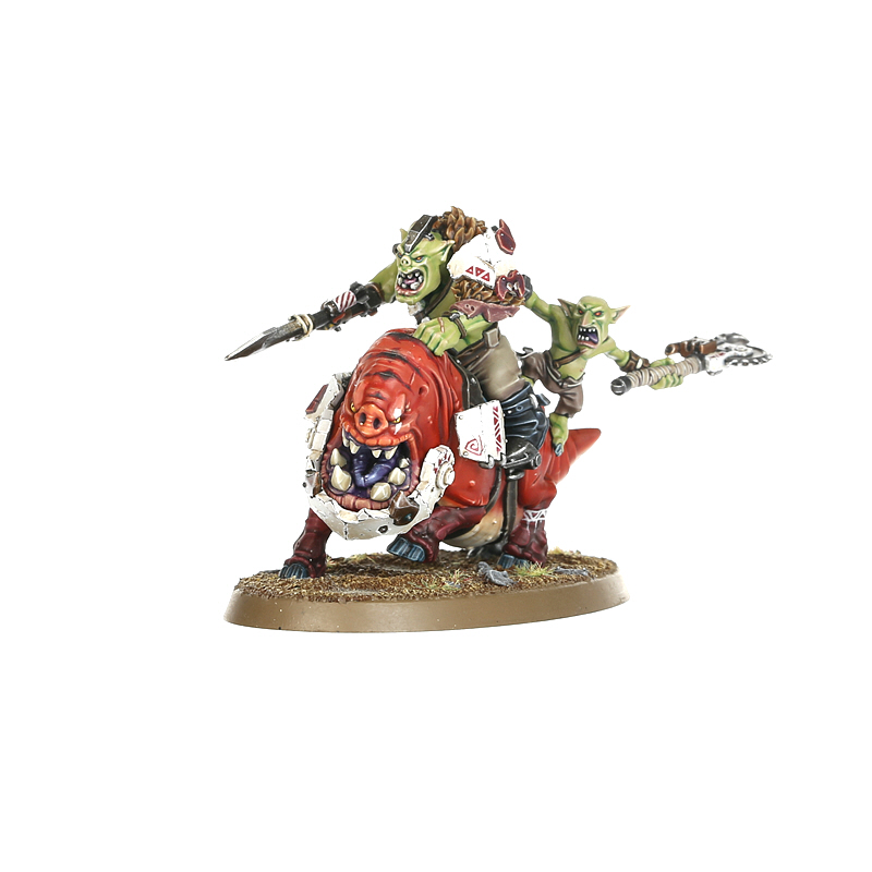 If their impressive charges weren’t enough, units of Squighog Boyz also hurl explosive, rokkit-propelled stikkas at their enemies, softening up any tough armour in the process. Behind each boy clings an unfortunate
