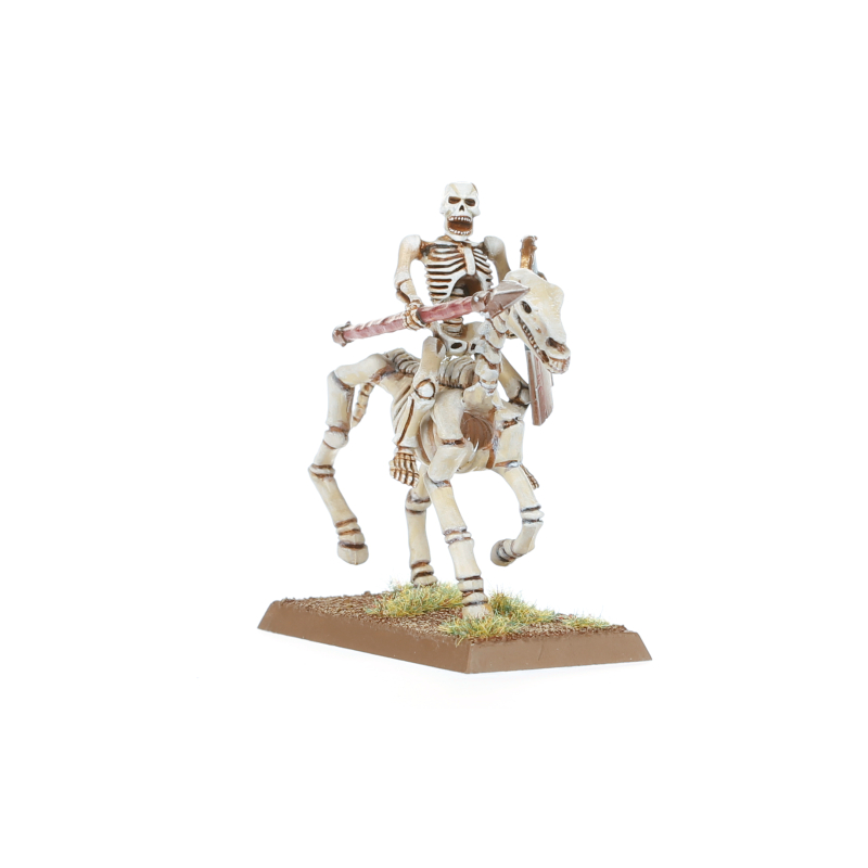Skeleton Horsemen and Horse Archers are the tireless, clattering cavalry of Nehekhara’s eternal legions, raised in terrifying numbers from the tomb pits of lost ages. Their deathless steeds gallop around the enemy flanks without need for rest, as the skeletal riders lower heavy spears or loose volleys of hissing arrows in perfect unison. It is a brave foe indeed that does not crumble under the advance of these unflinching warriors.